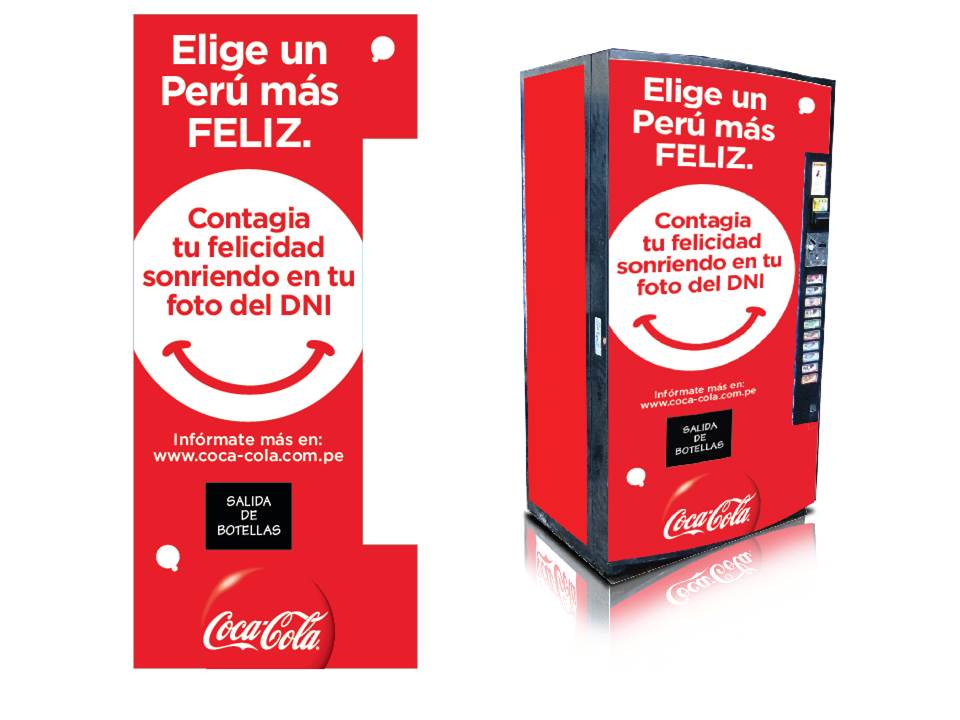 Con una inversión superior a los 1,5 millones de dólares, y una campaña en Internet, Vía Pública, BTL y medios tradicionales que duró dos meses, dentro de las acciones que tomó Coca-Cola estuvo el acuerdo con el Registro Nacional de Identificación y Estado Civil de Perú (RENIEC) para instalar cabinas de fotos gratuitas en algunos lugares de ese país con el objetivo de que la gente tenga un documento de identificación pero sonriendo, contrario a la foto que tradicionalmente se toma la gente.