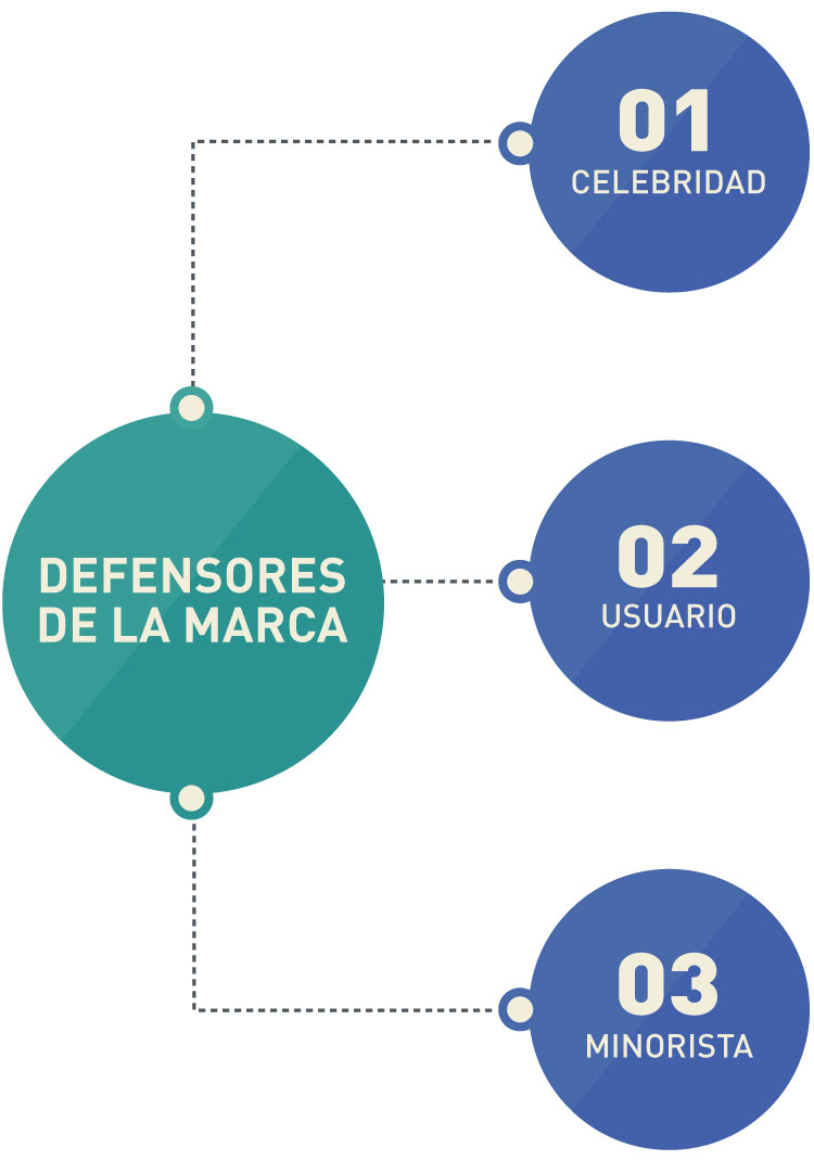Los defensores de la marca pueden ser de varios tipos, entre los principales están:
