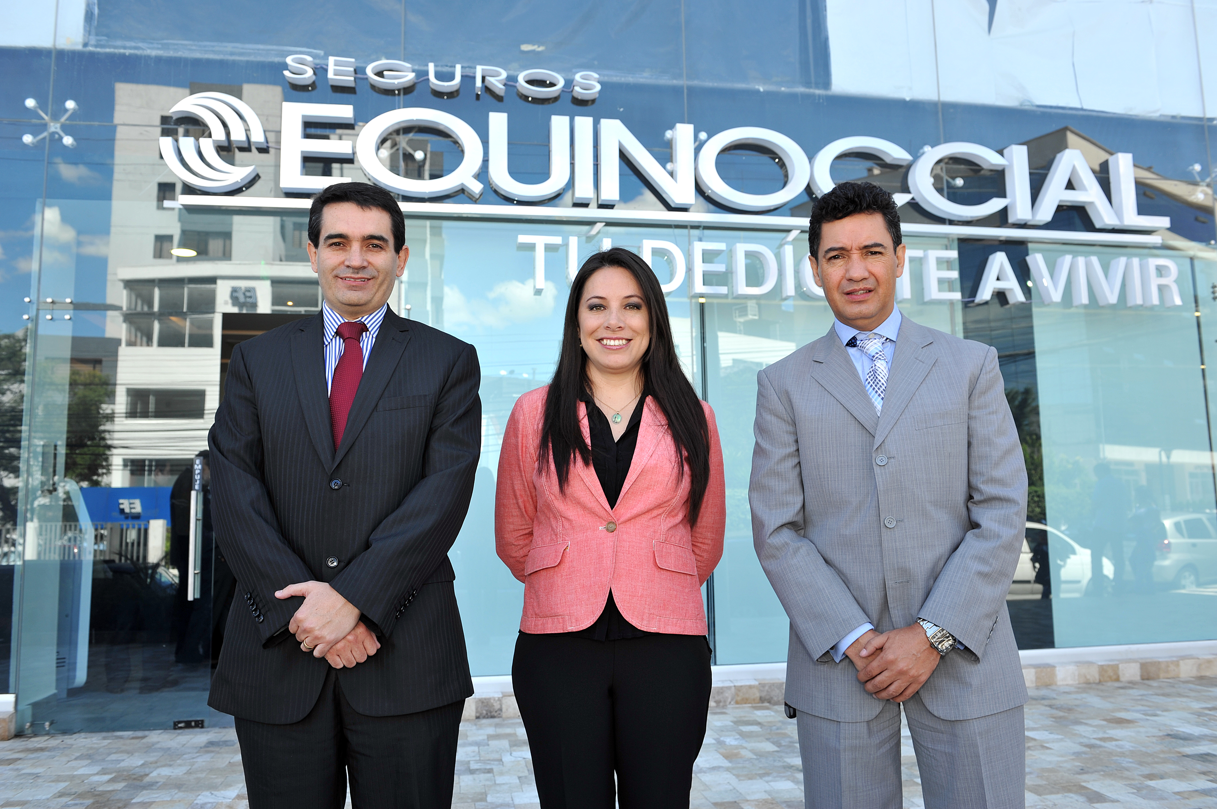 Pie de foto: Fernando Miranda, director de Indemnizaciones; Fátima Morales, directora de Servicio al Cliente; y Rubén Narvaez, gerente de Operaciones, de Seguros Equinoccial.